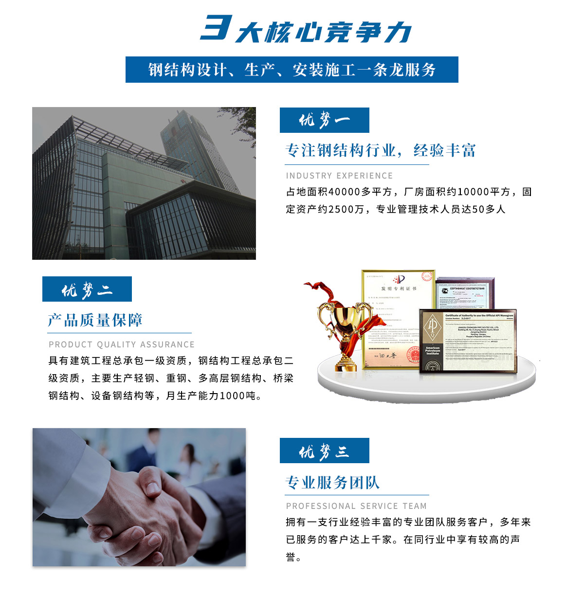 南京綠野建設集團有限公司鋼結構分公司為民營股份制企業,位于104旁的南京江寧土橋工業園內,交通非常便捷,占地面積40000多平方,廠房面積約10000平方,固定資產約2500萬,管理技術人員達50多人。公司廠區的整體設計為花園式工廠,配有現代化標準廠房,辦公樓、小橋、流水、臺等建筑,環境十分優美。 南京鋼結構廠家綠野集團專門從事鋼結構設計、生產、安裝施工服務,具有建筑工程總承包一級資質,鋼結構工程總承包二級資質,是中國工程機械工業協會混凝土機械分會會員。目前公司主要生產輕鋼、重鋼、多高層鋼結構、橋梁鋼結構、設備鋼結構等,月生產能力1000噸。 公司采用現代化的生產管理模式,組織機構齊全,主要為總經理室、企管辦、財務部、營銷部、技術部、質量安全部、物管部、工程部以及產品加工中心等。生產實行項目管理機制,項目經理負責人機制、項目成本*核算制。在工程實施過程中全程貫徹質量、環境與職業健康三標合-的管理體系,有力的保障了工...